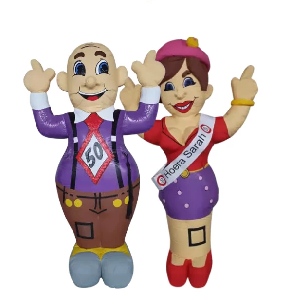 Opzoek naar een unieke verrassing voor een bruidspaar of .. jarig echtpaar? Huur bij ons het bruidspaar Feestend. Beide poppen zijn 4 meter hoog, dus deze zijn niet te missen in de tuin! Traditioneel wordt er gekozen voor de standaard boog bij hulde aan het .. jarig echtpaar. Bij ons verras je het echtpaar/bruidspaar met een keer wat anders! Tevens zetten we bij bezorging GRATIS uw favoriete opblaasfiguren op en breken we deze aan het einde van de huurperiode weer netjes af. De poppen worden standaard geleverd met: