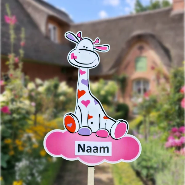 Hoera, er is een meisje geboren! Wat is er mooier dan het delen van dit geweldige nieuws met een stijlvol en uniek geboortebord in de tuin? Bij ons vind je het grootste aanbod geboorteborden van Nederland, dus je hebt volop keuze! Met meer dan 50 verschillende ontwerpen ben je gegarandeerd van een bord dat perfect past bij de stijl en persoonlijkheid van de kersverse ouders. Een van de meest populaire ontwerpen in ons assortiment is het geboortebord Giraffe met een naamwolkje in de kleuren roze/rood – een frisse en speelse keuze die zeker de aandacht trekt.