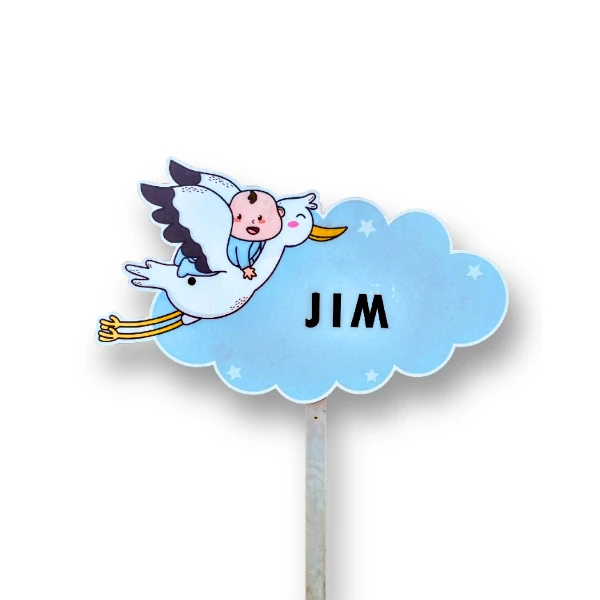 Bezorgen van het Geboortebord Naamwolkje met Jongetje op Ooievaar Blauw