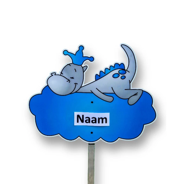 Het geboortebord "Draakje Dirk op Blauwe Wolk" is een schattig en uniek bord dat een glimlach op ieders gezicht tovert. Dit vrolijke bord is een prachtige manier om de geboorte van een jongen te vieren en laat de hele buurt weten dat er een nieuw leven is begonnen! Het draakje Dirk, dat lekker slaapt op een wolkje met de naam van het pasgeboren jongetje, vormt een perfecte aanvulling op de tuin van de kersverse ouders. Het bord is niet alleen een feestelijke aankondiging, maar ook een prachtig visueel element in de tuin dat zeker de aandacht trekt.