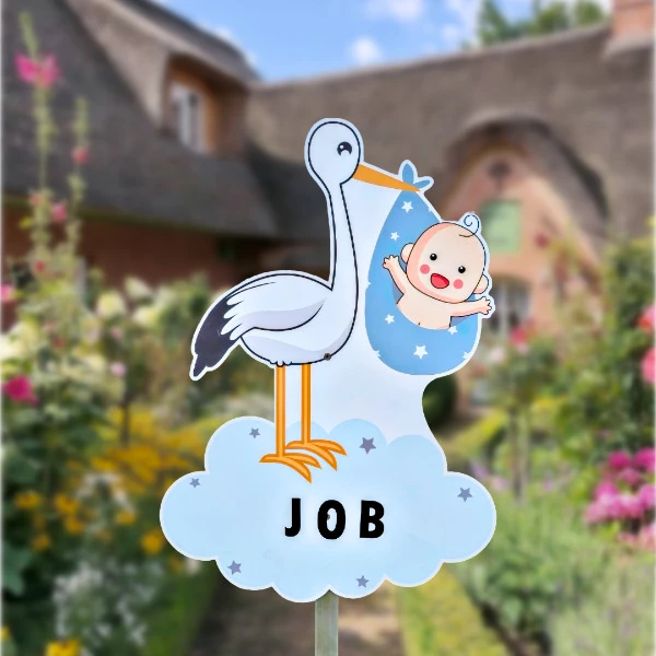 Geboortebord tuin Ooievaar wolk Blauw