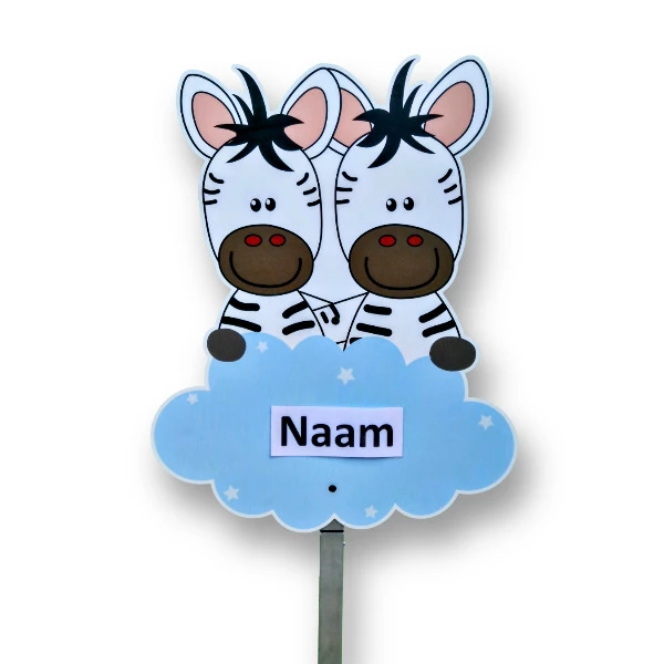 Stel je voor: een geboortebord met een schattige zebra in een speelse blauwe tint die de tweeling aankondigt. Dit bord valt direct op en trekt de aandacht van iedereen die langsloopt. Het bord is ontworpen met het oog op zowel stijl als eenvoud, en biedt een vrolijk en uniek ontwerp voor deze bijzondere gebeurtenis. Natuurlijk staan beide namen van de pasgeboren kinderen op het bord, zodat iedereen in de buurt precies weet wie er welkom geheten wordt! Geen gedoe met zelf een bord maken of te moeten knutselen. Jij hoeft alleen maar te kiezen welk bord je het mooiste vindt, en wij zorgen voor de rest.