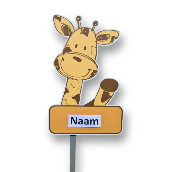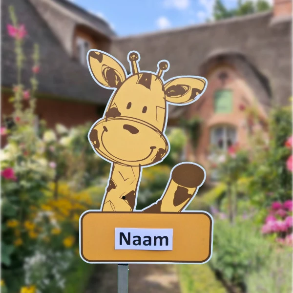 Geboortebord tuin Zwaaiende gele giraffe