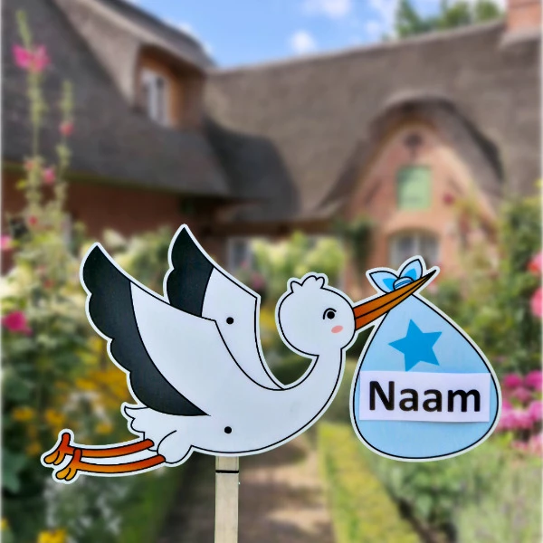 Kortom, het geboortebord vliegende ooievaar babyblauw is een stijlvolle, gemakkelijke en sfeervolle manier om het nieuws van de komst van je zoon te delen. Het bord zal zeker veel bewondering oogsten en is de perfecte manier om dit bijzondere moment te vieren. Wacht niet te lang en reserveer snel jouw geboortebord, zodat jij op de grote dag kunt schitteren met een prachtig welkom voor de kleine!